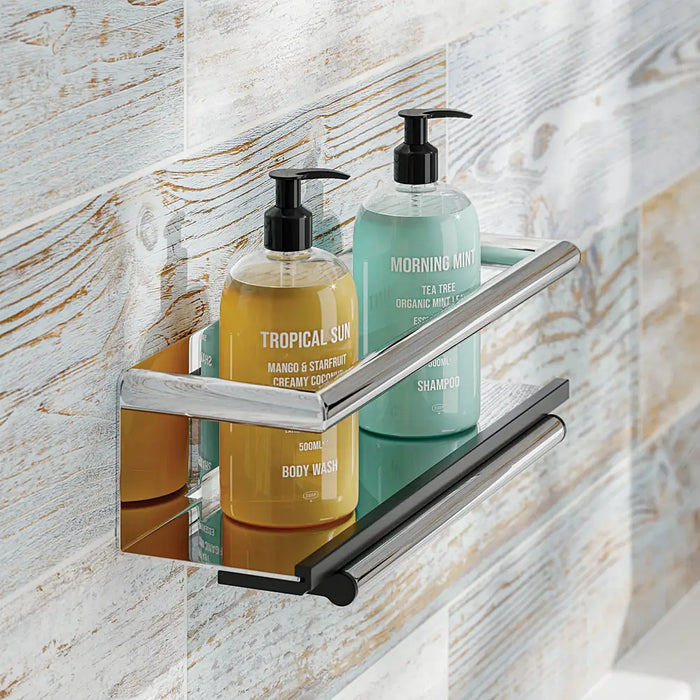 Keep the clutter at bay with this multi feature shower shelf, which blends storage space with safety thanks to its polished grab bar. Combined with a convenient magnetic squeegee attachment, this shower basket ticks all of the boxes.