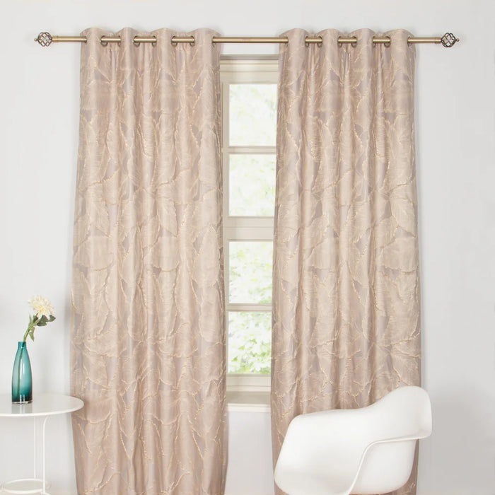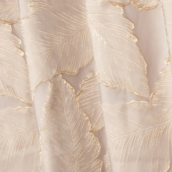 The warm taupe tone pairs beautifully with soft colour schemes, while the golden embroidered foliage adds a subtle touch of luxury.