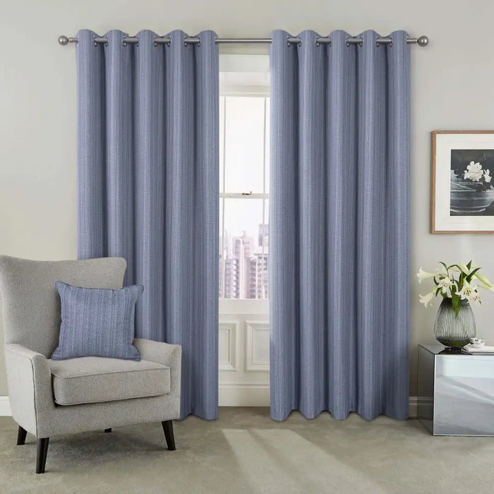 Bring calm and comfort to your space with the Jacob Blue Curtains, featuring a soft mid-blue tone and a subtle texture.