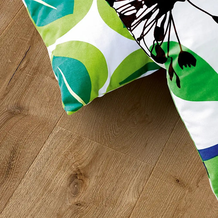 Create a relaxed, natural vibe with Arendal Riverside from Pergo. This 9mm laminate floor blends soft beige and light oak tones with realistic grain and a matte finish for an airy, coastal-inspired feel.
