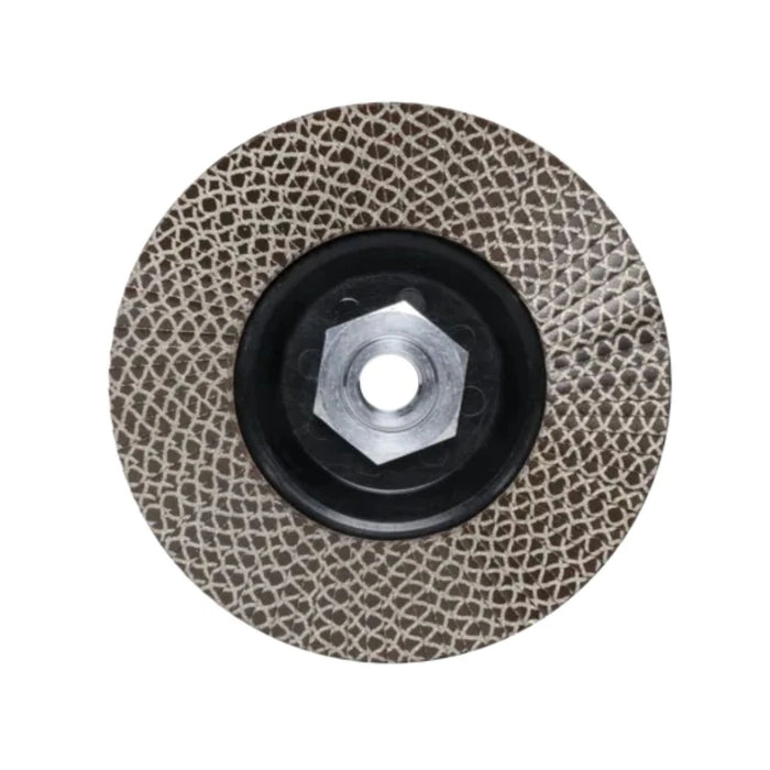 The Diamond Flap Disc-115 100/120 grit is designed for grinding ceramic, porcelain, sintered stone, and natural stone, making it ideal for edges, small surfaces, mitres, and bevels.